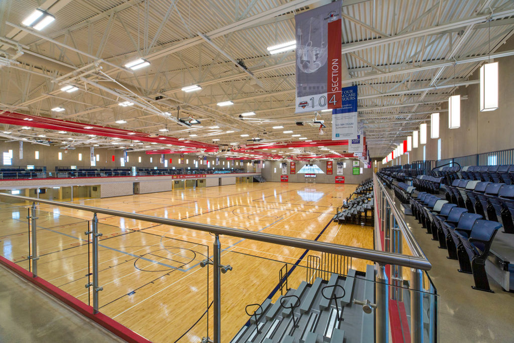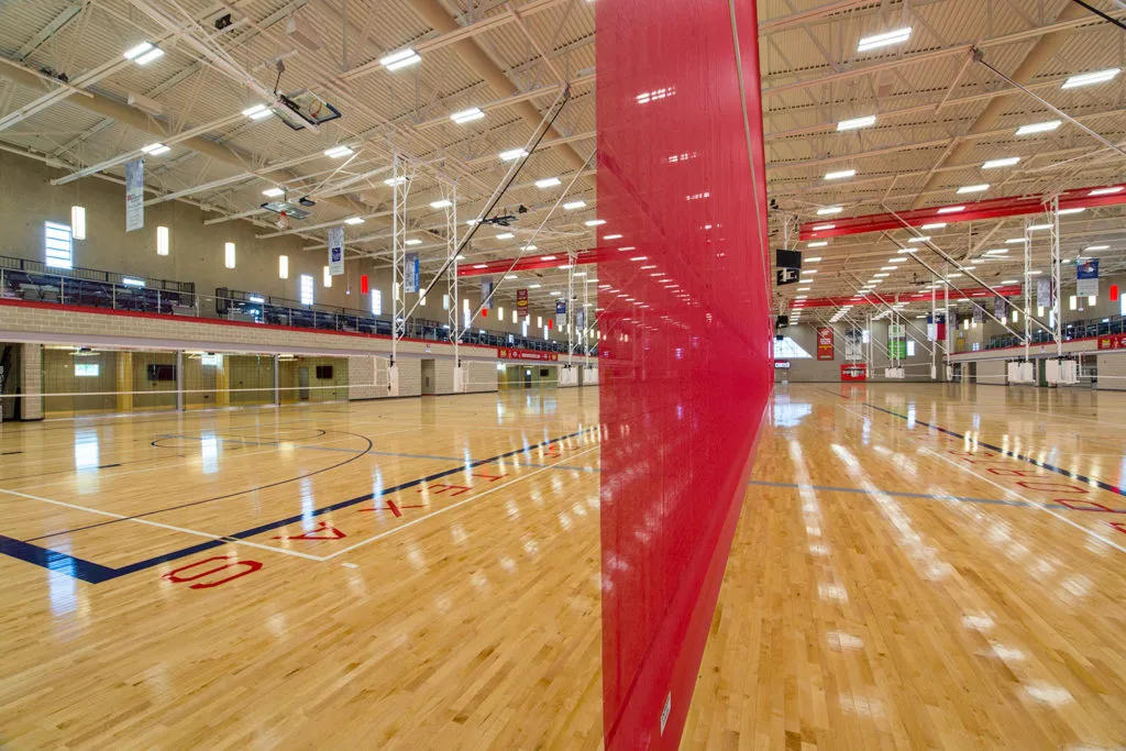 If you’re an athlete competing at our facility, you’ll be happy to know the Sports Center has 47,775 square feet of playable space! The playable space is covered with Bio-Cushion Classic maple flooring from Robins Sports Surfaces. The bio-cushion system is engineered for enhanced comfort and impact absorption for athletes of all levels. The maple wood is durable and long-lasting. Our floors are maintained daily and refinished annually with an oil-based finish to keep the floors looking brand new!